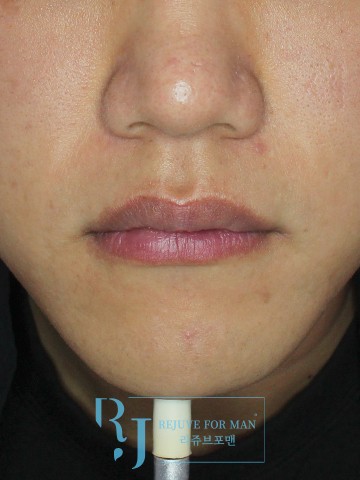 시술 후 한달 경과, 인중쪽으로 난 수염이 면적이 좀 더 줄어들어 인중 끝쪽으로만 조금 남아있는 모습